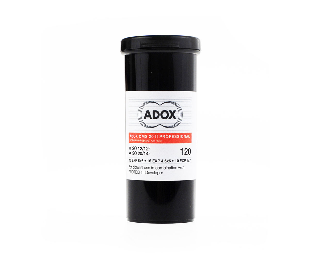 Adox CMS 20 II es una película ortopantomática en blanco y negro de baja velocidad con una sensibilidad nominal de ISO 20/14°. Se distingue por su nitidez realmente sorprendente y su grano fino. La capa antihalo «AHU» (capa antihalo) entre la emulsión y la capa base garantiza la nitidez de la película. La película está revestida sobre una base totalmente transparente y puede ser procesada de forma inversa para convertirla en una película de diapositivas en blanco y negro.