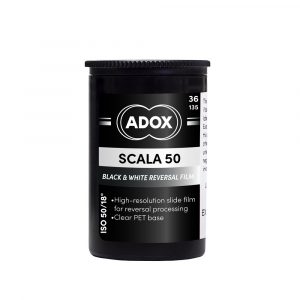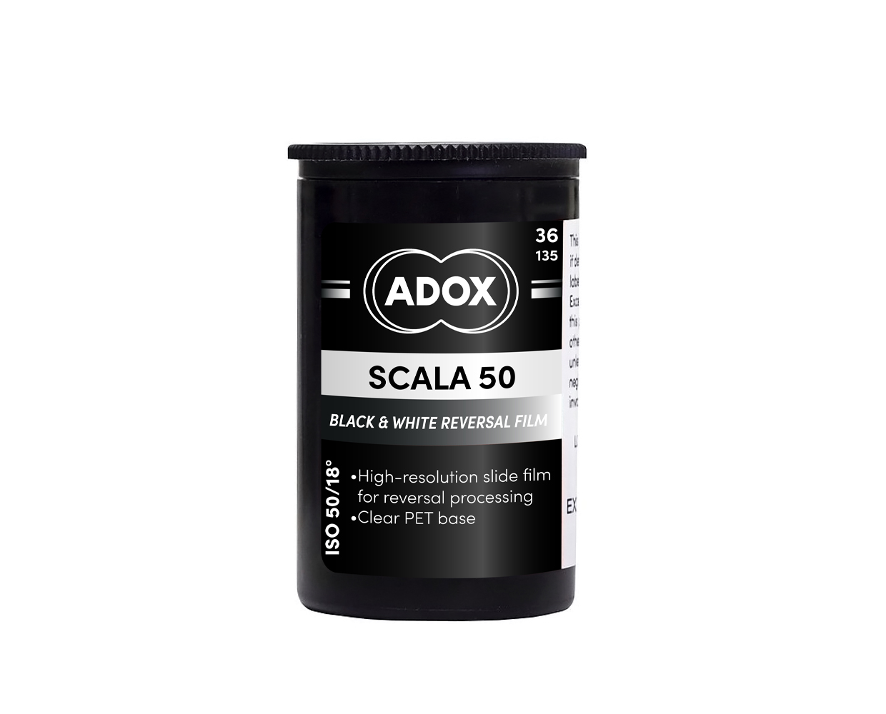 La nueva Adox SCALA 50 es una película para diapositivas en B/N de alta resolución con un alto rango de copias, bajo DMIN y muy buen DMAX. Está revestida sobre una base de PET transparente. La película está basada en ADOX HR-50 con tecnología «SPEED BOOST».