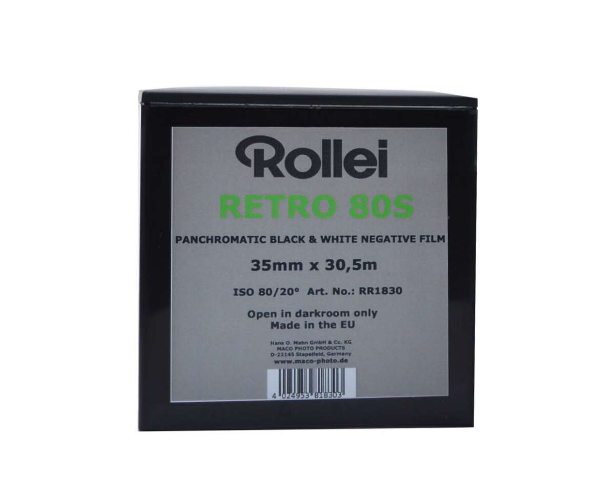 Rollei Retro 80S es una película pancromática en blanco y negro con una sensibilidad nominal de ISO 80/20°. Rollei Retro 80S es una excelente película universal, ideal para una gama extremadamente amplia de aplicaciones, tales como retrato, paisaje y fotografía de productos. Esta película combina una excelente calidad de imagen con sensibilidad universal. La emulsión de Rollei Retro 80S está recubierta sobre una base sintética transparente que garantiza la estabilidad dimensional a largo plazo.