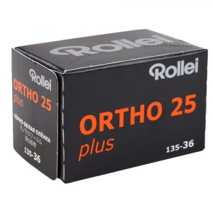 La Rollei Ortho 25 es una película en blanco y negro técnica y empinada con una sensibilidad nominal de ISO 25/15°. La Rollei ORTHO 25 se caracteriza por una alta reserva de sensibilidad de hasta dos paradas, dependiendo del revelado. La emulsión del documento ofrece una nitidez excepcional, con el grano más fino. La Rollei ORTHO 25 es muy adecuada para aplicaciones técnico-científicas y como película de medio tono en fotografía pictórica (por ejemplo, fotografía de calle, fotografía de paisaje, retratos. Los reveladores de bajo contraste, que doblan la gradación para aumentar la riqueza tonal (más valores de gris), son los más adecuados. El material base de PE, relativamente claro, abre la posibilidad de utilizarlo como película de diapositivas en blanco y negro.