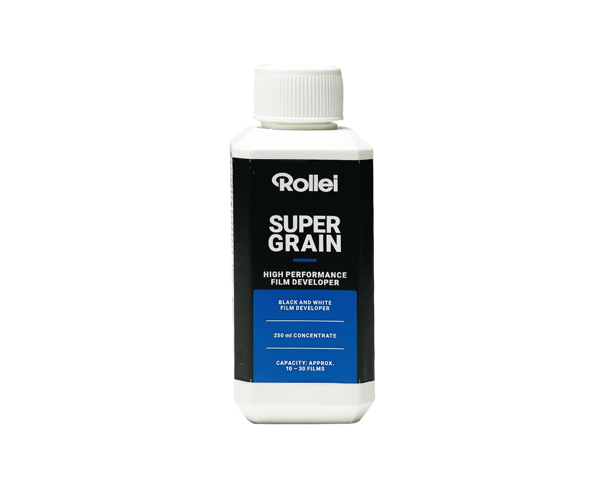 Rollei Supergrain es un moderno revelador de grano fino para películas en blanco y negro. Supergrain ofrece una calidad de imagen superior con un grano extremadamente fino. Produce resultados nítidos, aprovechando al máximo la velocidad de la película. Supergrain es el resultado del desarrollo de la receta clásica AM-74. Dilución: 1 + 9, 1 + 12 y 1 + 15. Rendimiento: hasta 60 películas