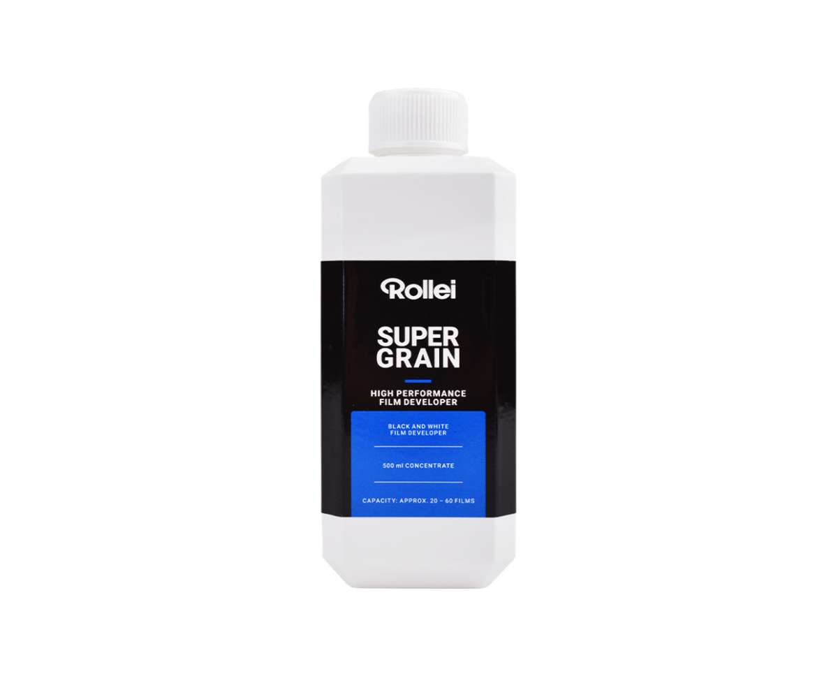Rollei Supergrain es un moderno revelador de grano fino para películas en blanco y negro. Supergrain ofrece una calidad de imagen superior con un grano extremadamente fino. Produce resultados nítidos, aprovechando al máximo la velocidad de la película. Supergrain es el resultado del desarrollo de la receta clásica AM-74. Dilución: 1 + 9, 1 + 12 y 1 + 15. Rendimiento: hasta 60 películas
